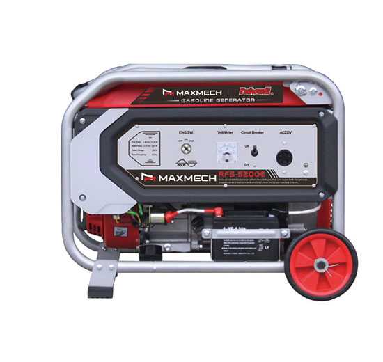Key Specifications (Maxmech RFS-5200E)Based on common listings and the model number:FeatureSpecification (Expected)Impact on UseStart SystemElectric (Key Start)Major Upgrade from the manual RFS-5200, including a battery and starter mechanism.Max Power (Surge)$3.8 \text{ KVA}$ (or $3.0 \text{ kW}$)Provides the necessary power spike to start motors like refrigerators and pumps.Rated Power (Continuous)$3.0 \text{ KW}$ (or $2.8 \text{ kW}$ in many specifications)This is the safe, continuous power you can rely on for running your devices.Coil Material100% CopperA key Maxmech feature, ensuring high efficiency, better heat dissipation, and longevity.AVR SystemAutomatic Voltage RegulatorStabilizes the voltage output to protect sensitive electronics like TVs and computers.Fuel Tank Capacity$\approx 15 \text{ Liters}$Offers a good continuous running time (often $6-8$ hours) at moderate load.
